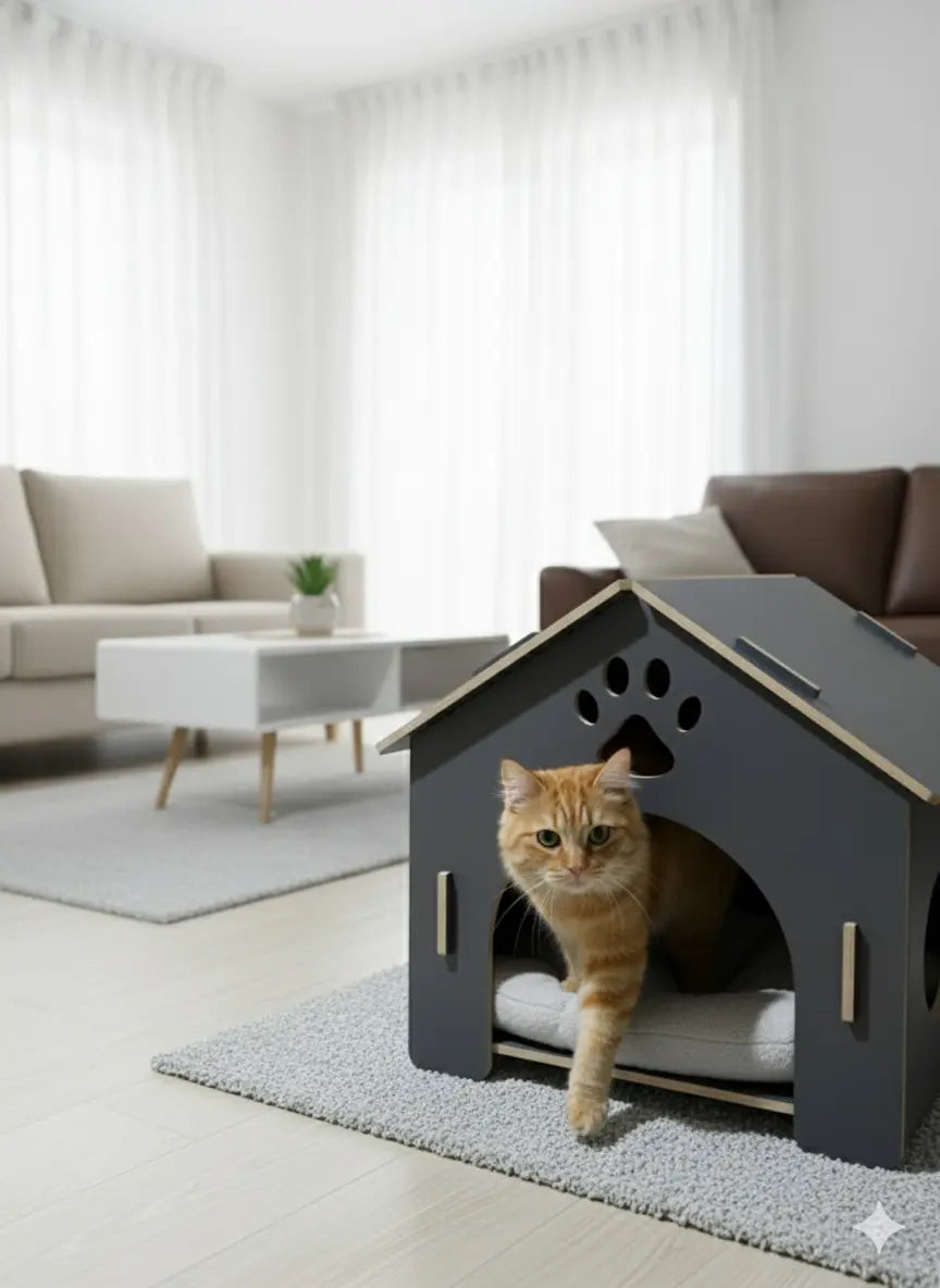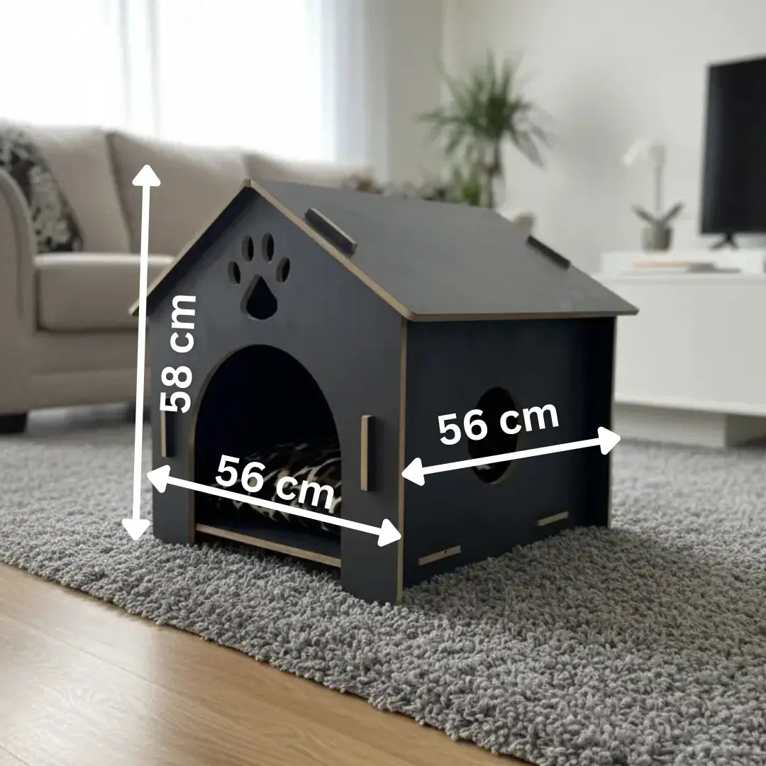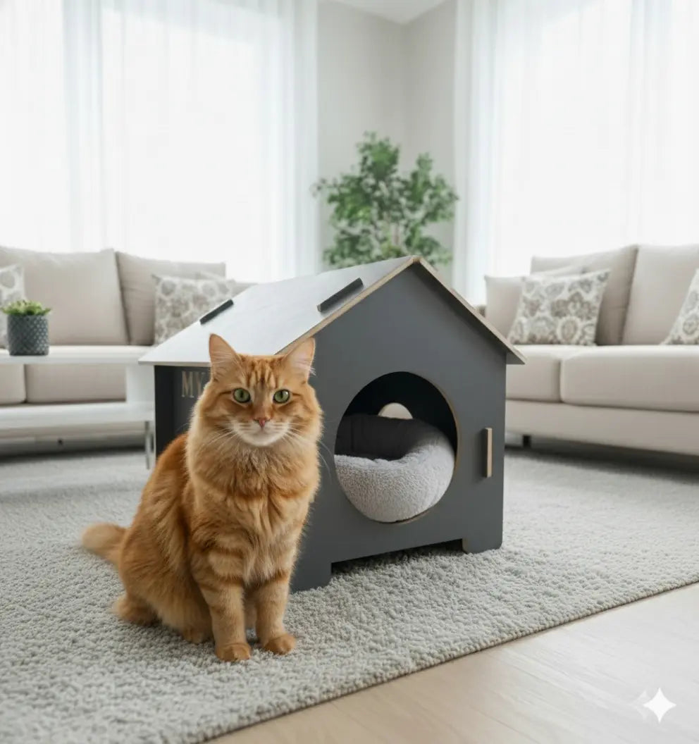 La Maison/Niche Woodally est le mariage parfait entre meuble design et confort animal. Fabriquée en bois de qualité, elle s'intègre avec élégance à tout intérieur moderne ou marocain. Choisissez le modèle Chien ou Chat et personnalisez-le avec le nom de votre animal : c'est un sanctuaire privé, chaleureux et 100% unique.