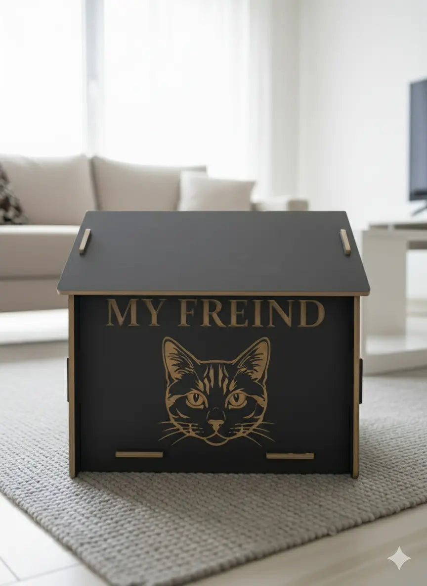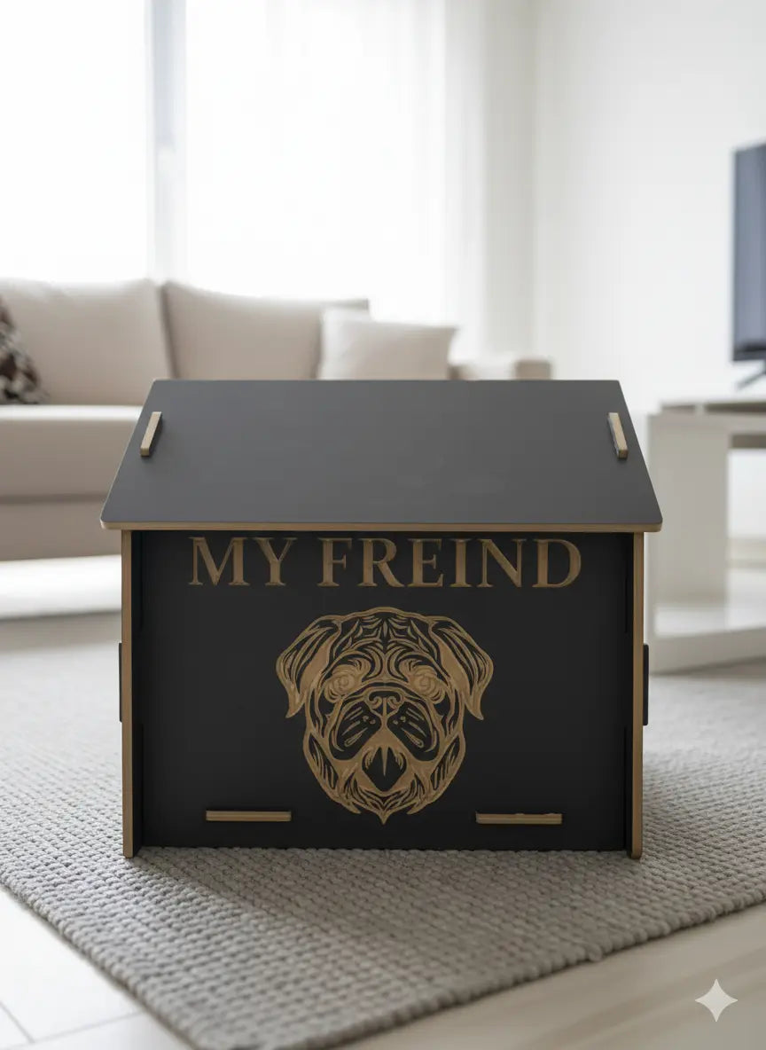 Personnalisation Exclusive : Remplacez le mot "MY FREIND" par le nom de votre animal ! Rendez son refuge unique grâce à une gravure personnalisée et affectueuse.